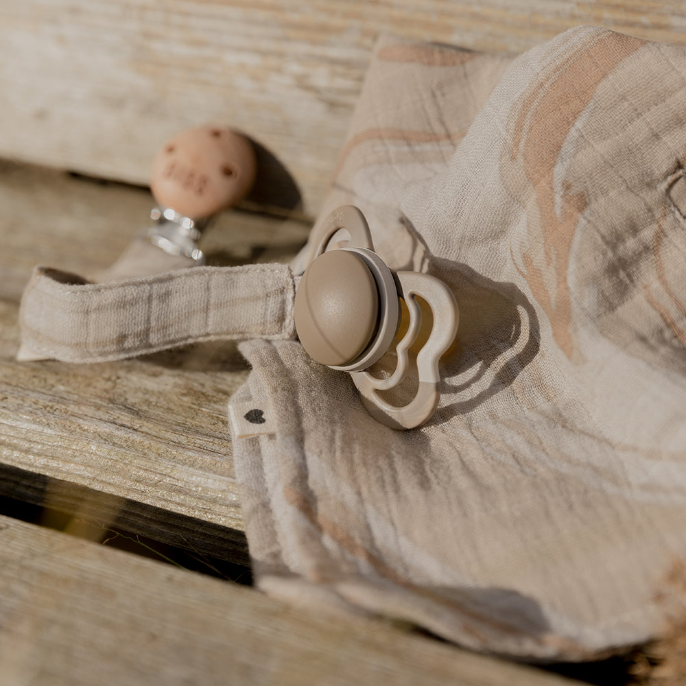 Attache-tétine camouflage Tie Dye Sable