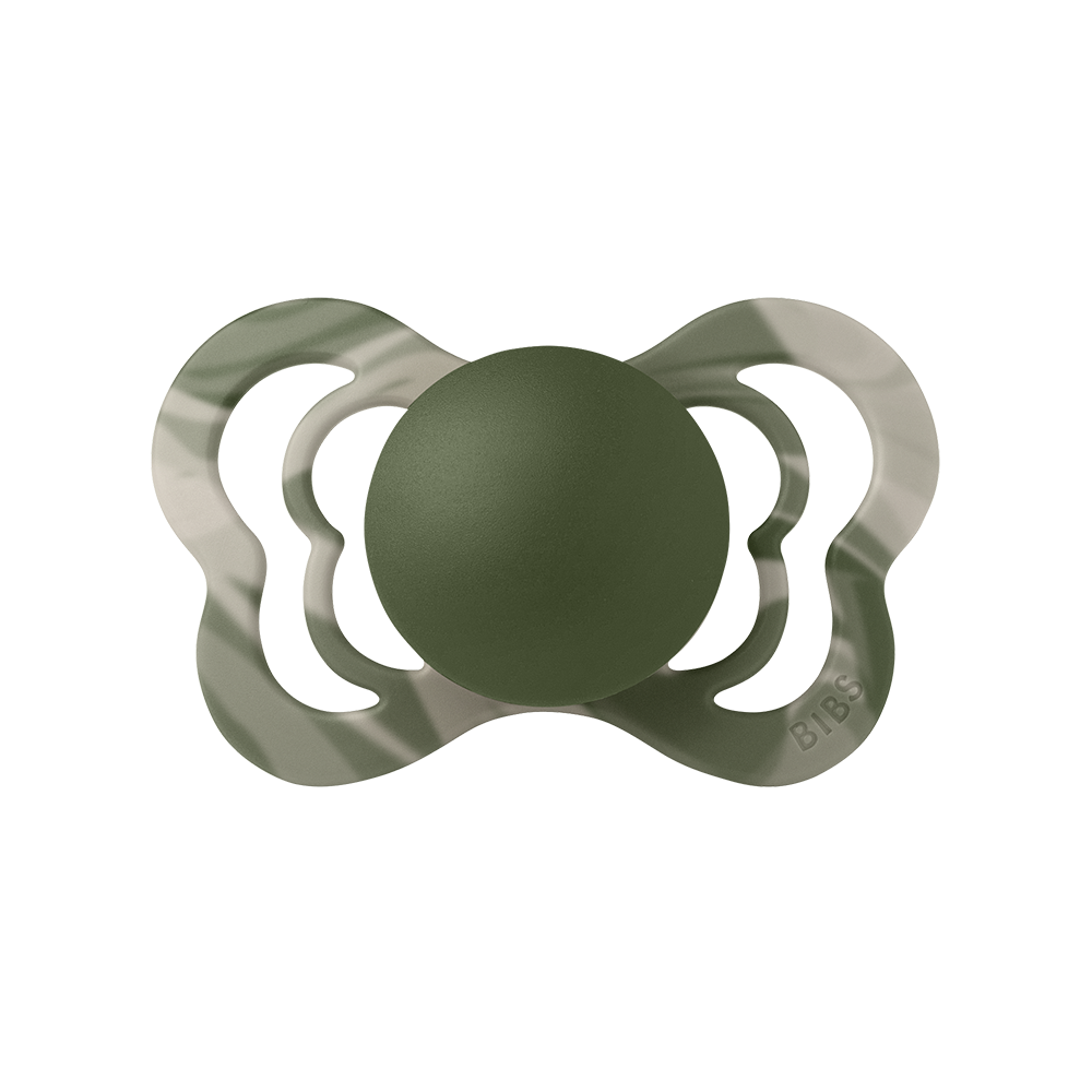 The Camo Collection consists of pacifiers in a natural woodland aesthetic.
