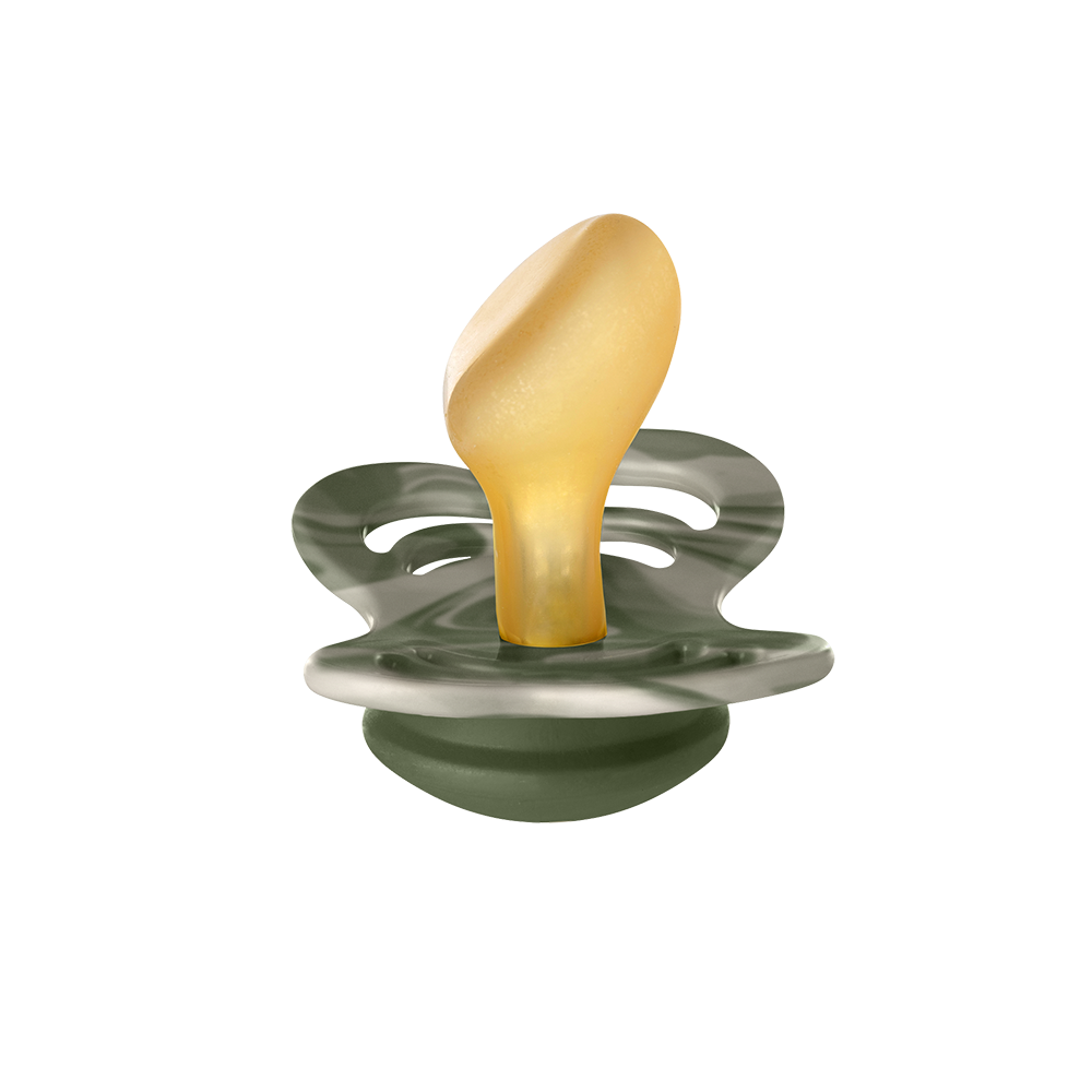 Couture comes with an anatomical nipple that is curved at the top for a natural fit to the baby's palate with an angled tip for easy placement of the tongue. This nipple promotes a tongue placement and sucking technique where the sides of the tongue cup around the nipple, as it does during breastfeeding. The angled tip means that the baby does not need to suck as hard for the pacifier to flatten inside the mouth.